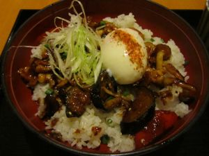 お昼に食べたのは、鶏となすのみそ炒め丼。