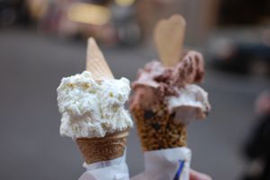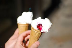 耐えきれずジェラートをペロリ♪