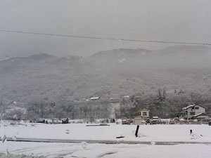 でも、今朝は山が雪化粧になってて、きれいでした。