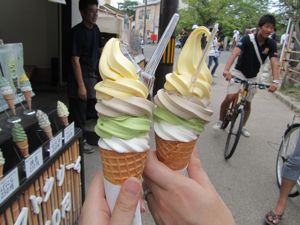 マンゴー、ほうじ茶、抹茶、バニラの順に