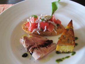 前菜、サラダ、パン、パスタ、ドリンクついて