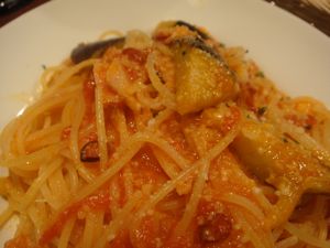 定番のトマトパスタだけど、やっぱりおいしいです。
