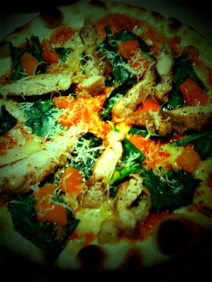 グリルチキンとバジルのピザ